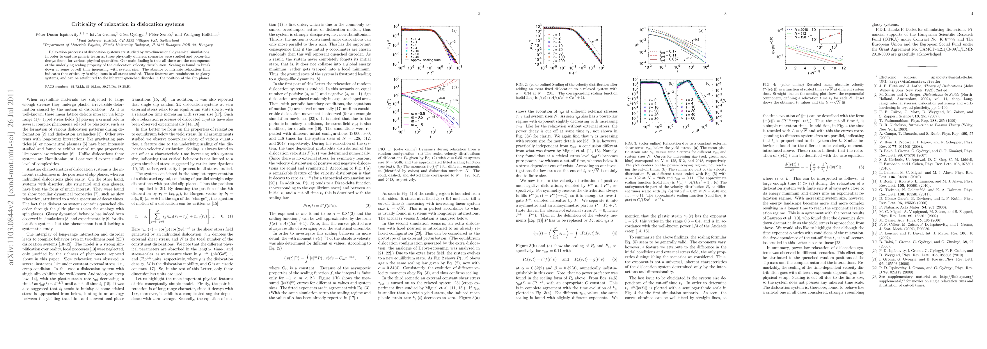This paper investigates relaxation processes in dislocation systems via dynamical simulations, revealing power-law decays and the presence of criticality in various scenarios. The study finds that the underlying scaling property of dislocation velocity distribution leads to ubiquitous criticality, akin to glassy systems, due to quenched disorder in slip planes.