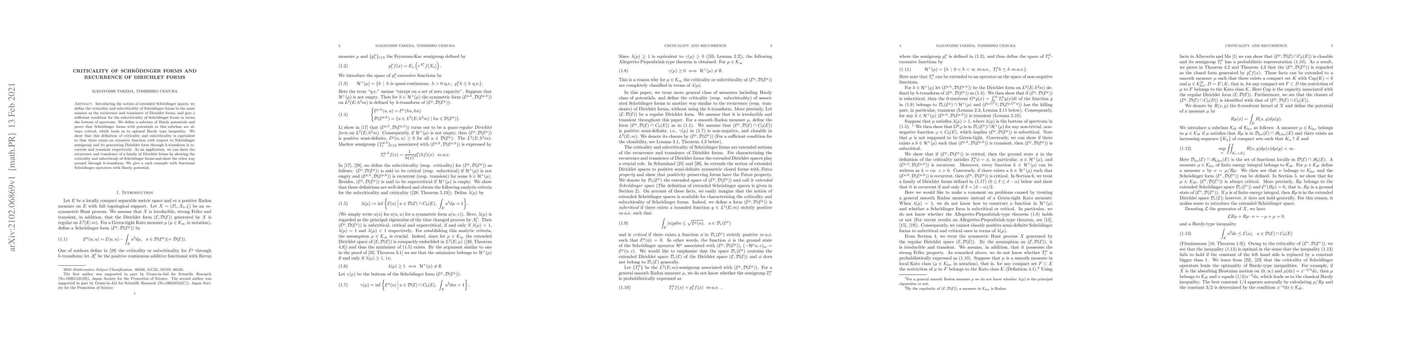 This paper introduces extended Schrödinger spaces and defines criticality and subcriticality of Schrödinger forms analogous to recurrence and transience in Dirichlet forms. It establishes a sufficient condition for subcriticality based on the spectrum's bottom and proves that certain Hardy potentials lead to critical Schrödinger forms, yielding an optimal Hardy type inequality.
