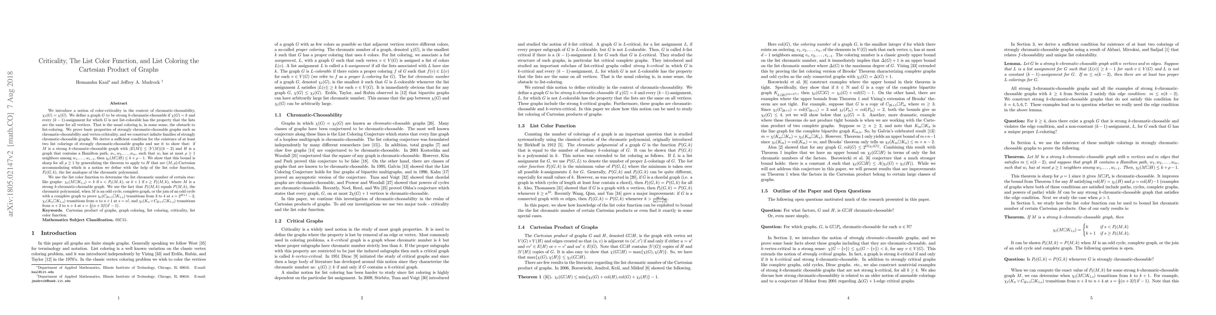 We introduce a notion of color-criticality in the context of chromatic-choosability. We define a graph $G$ to be strong $k$-chromatic-choosable if $\chi(G) = k$ and every $(k-1)$-assignment for which $G$ is not list-colorable has the property that the lists are the same for all vertices. That is the usual coloring is, in some sense, the obstacle to list-coloring. We prove basic properties of strongly chromatic-choosable graphs such as chromatic-choosability and vertex-criticality, and we construct infinite families of strongly chromatic-choosable graphs. We derive a sufficient condition for the existence of at least two list colorings of strongly chromatic-choosable graphs and use it to show that: if $M$ is a strong $k$-chromatic-choosable graph with $|E(M)| \leq |V(M)|(k-2)$ and $H$ is a graph that contains a Hamilton path, $w_1, w_2, \ldots, w_m$, such that $w_i$ has at most $\rho \geq 1$ neighbors among $w_1, \ldots, w_{i-1}$, then $\chi_{\ell}(M \square H) \le k+ \rho - 1$. We show that this bound is sharp for all $\rho \ge 1$ by generalizing the theorem to apply to $H$ that are $(M,\rho)$-Cartesian accommodating which is a notion we define with the help of the list color function, $ P_{\ell}(G,k)$, the list analogue of the chromatic polynomial. We also use the list color function to determine the list chromatic number of certain star-like graphs: $\chi_{\ell}(M \square K_{1,s}) =$ $k \; \text{if } s < P_{\ell}(M,k)$, or $k+1 \; \text{if } s \geq P_{\ell}(M,k)$, where $M$ is a strong $k$-chromatic-choosable graph. We show that $ P_{\ell}(M,k)$ equals $P(M,k)$, the chromatic polynomial, when $M$ is an odd cycle, complete graph, or the join of an odd cycle with a complete graph.