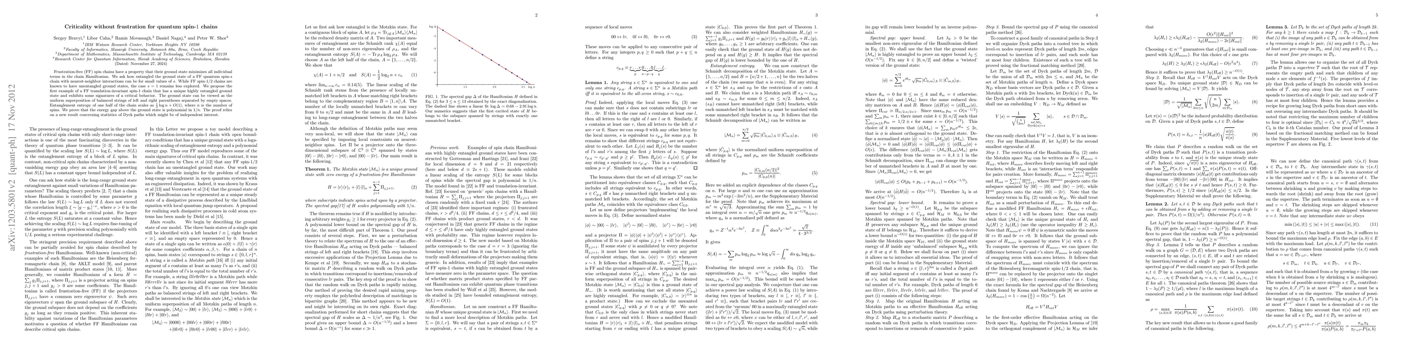 This paper explores frustration-free spin-1 quantum chains, presenting the first example of such a chain with a unique, highly entangled ground state. The entanglement entropy scales logarithmically, and the energy gap above the ground state is polynomially small, revealing critical behavior.