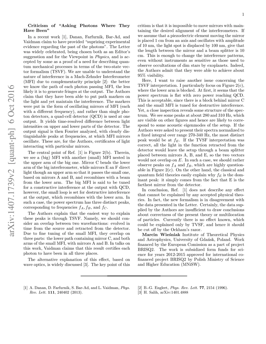 I stress that [PRL 111,240402(2013)] contains no result that need to be explained by so-called Two State Vector Formalism, and closely inspected data are in disagreement with claims of Danan, Farfurnik, Bar-Ad, and Vaidman