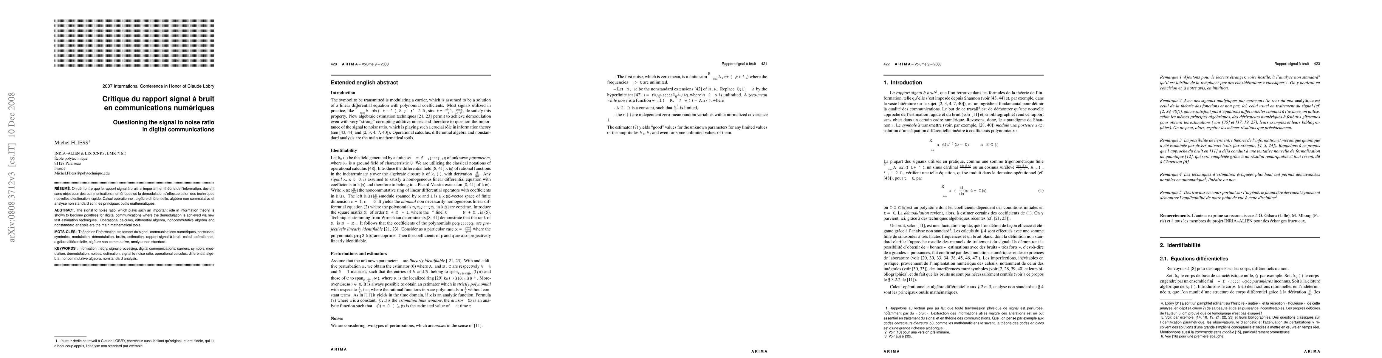 This paper critiques the traditional signal to noise ratio's relevance in digital communications, arguing that it becomes obsolete with advanced demodulation techniques. It employs operational calculus, differential algebra, noncommutative algebra, and nonstandard analysis to support its findings.
