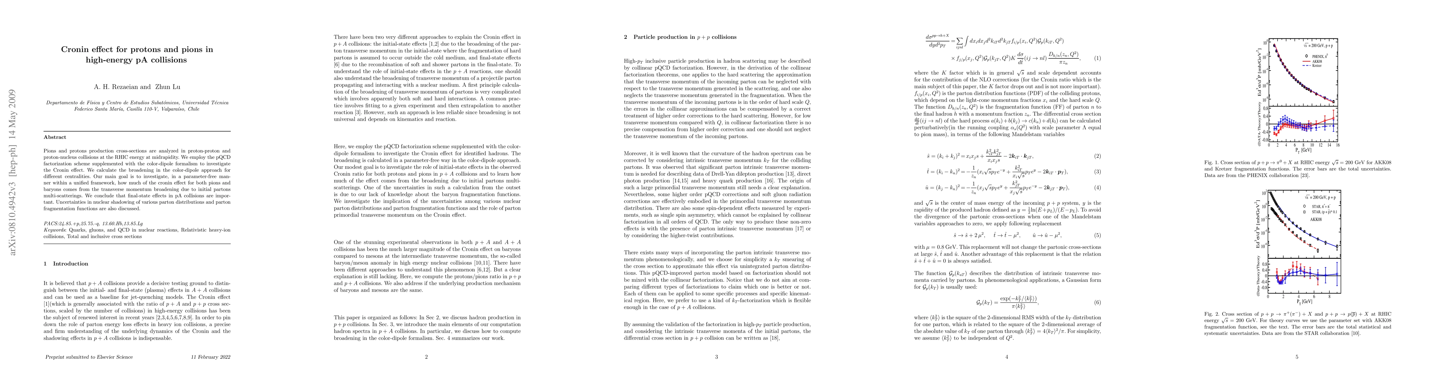 Pions and protons production cross-sections are analyzed in proton-proton and proton-nucleus collisions at the RHIC energy at midrapidity. We employ the pQCD factorization scheme supplemented with the color-dipole formalism to investigate the Cronin effect. We calculate the broadening in the color-dipole approach for different centralities. Our main goal is to investigate, in a parameter-free manner within a unified framework, how much of the cronin effect for both pions and baryons comes from the transverse momentum broadening due to initial partons multi-scatterings. We conclude that final-state effects in pA collisions are important. Uncertainties in nuclear shadowing of various parton distributions and parton fragmentation functions are also discussed.