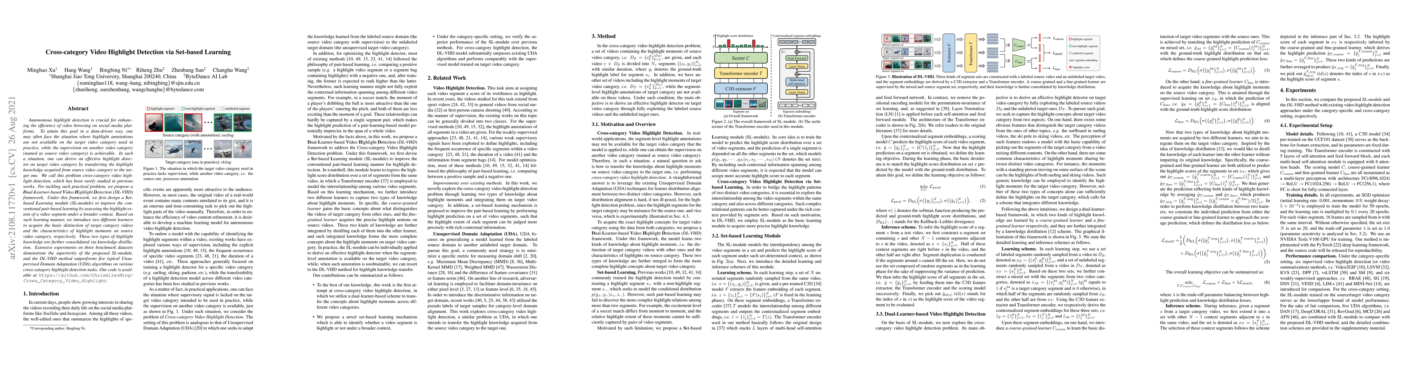 This paper introduces a Dual-Learner-based Video Highlight Detection (DL-VHD) framework for detecting highlights in videos across different categories, using Set-based Learning to transfer knowledge from source to target categories. The proposed method outperforms existing Unsupervised Domain Adaptation algorithms in detecting cross-category video highlights.