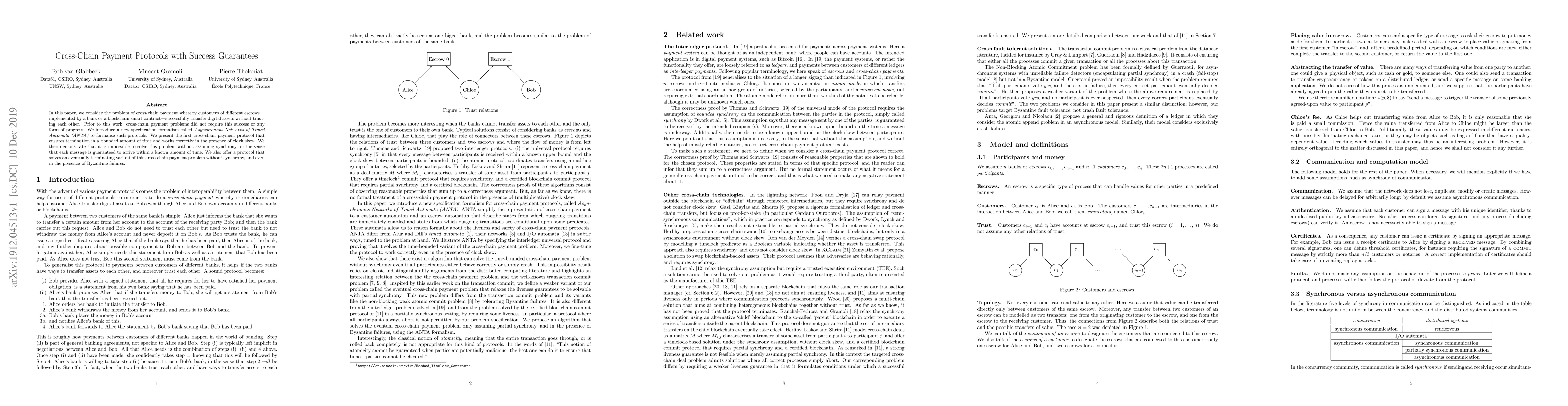In this paper, we consider the problem of cross-chain payment whereby customers of different escrows -- implemented by a bank or a blockchain smart contract -- successfully transfer digital assets without trusting each other. Prior to this work, cross-chain payment problems did not require this success or any form of progress. We introduce a new specification formalism called Asynchronous Networks of Timed Automata (ANTA) to formalise such protocols. We present the first cross-chain payment protocol that ensures termination in a bounded amount of time and works correctly in the presence of clock skew. We then demonstrate that it is impossible to solve this problem without assuming synchrony, in the sense that each message is guaranteed to arrive within a known amount of time. We also offer a protocol that solves an eventually terminating variant of this cross-chain payment problem without synchrony, and even in the presence of Byzantine failures.