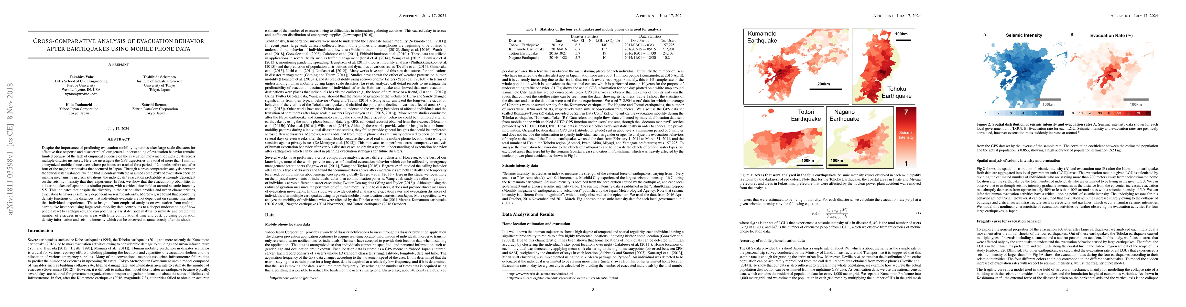 This study uses mobile phone data to analyze evacuation behavior after four major earthquakes in Japan, revealing that evacuation probability is strongly influenced by experienced seismic intensity, with a critical threshold around intensity 5.5. The research highlights that despite varying earthquake profiles, evacuation behavior is consistently dependent on seismic intensity, offering insights to improve disaster response simulations.