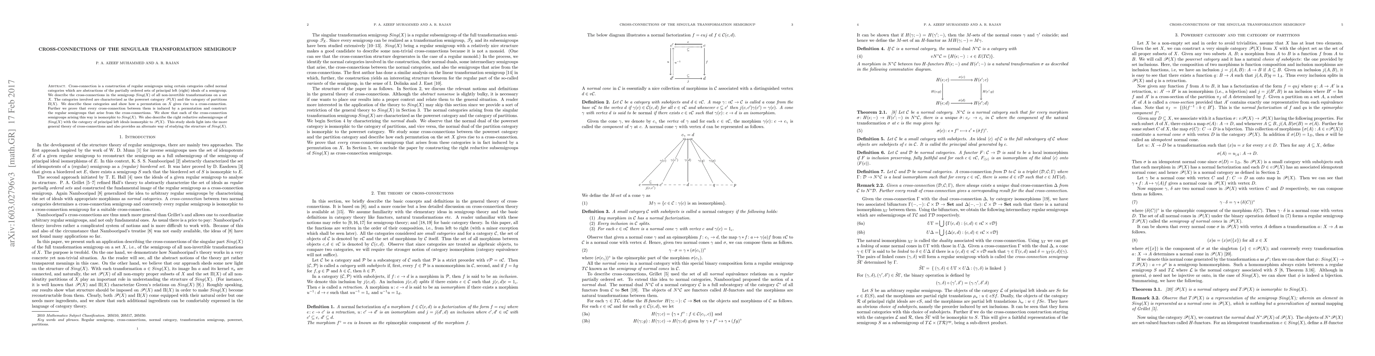 This paper explores cross-connections in the semigroup Sing(X) of non-invertible transformations on a set X, showing they induce regular semigroups isomorphic to Sing(X), providing an alternate way of studying its structure.