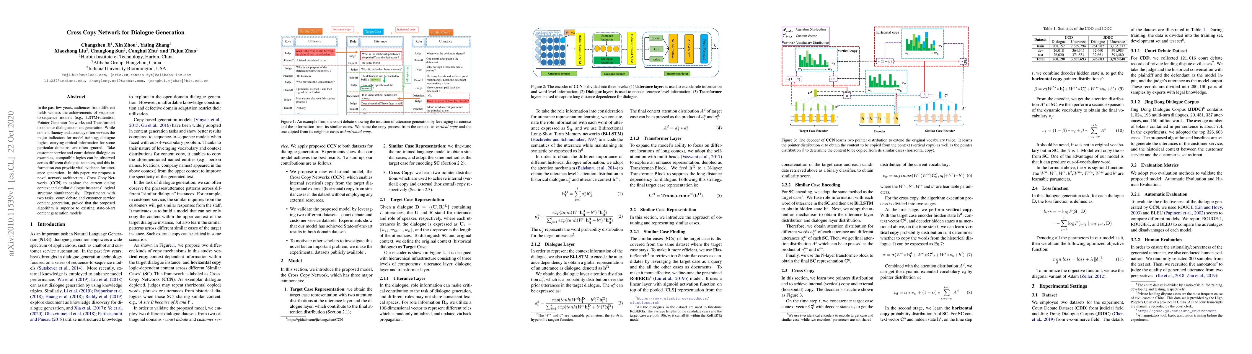 In the past few years, audiences from different fields witness the achievements of sequence-to-sequence models (e.g., LSTM+attention, Pointer Generator Networks, and Transformer) to enhance dialogue content generation. While content fluency and accuracy often serve as the major indicators for model training, dialogue logics, carrying critical information for some particular domains, are often ignored. Take customer service and court debate dialogue as examples, compatible logics can be observed across different dialogue instances, and this information can provide vital evidence for utterance generation. In this paper, we propose a novel network architecture - Cross Copy Networks(CCN) to explore the current dialog context and similar dialogue instances' logical structure simultaneously. Experiments with two tasks, court debate and customer service content generation, proved that the proposed algorithm is superior to existing state-of-art content generation models.