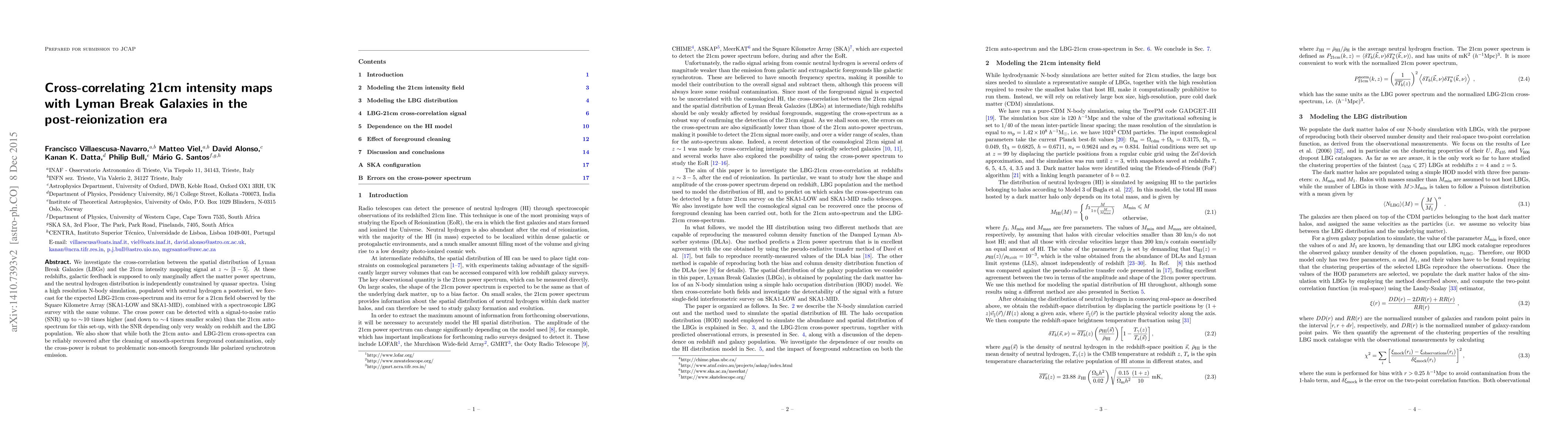 This paper explores the cross-correlation between Lyman Break Galaxies (LBGs) and the 21cm intensity mapping signal in the post-reionization era at $z\sim[3-5]$. It forecasts a detectable cross-spectrum with a high signal-to-noise ratio, robust against foreground contamination, using simulations and future SKA observations.