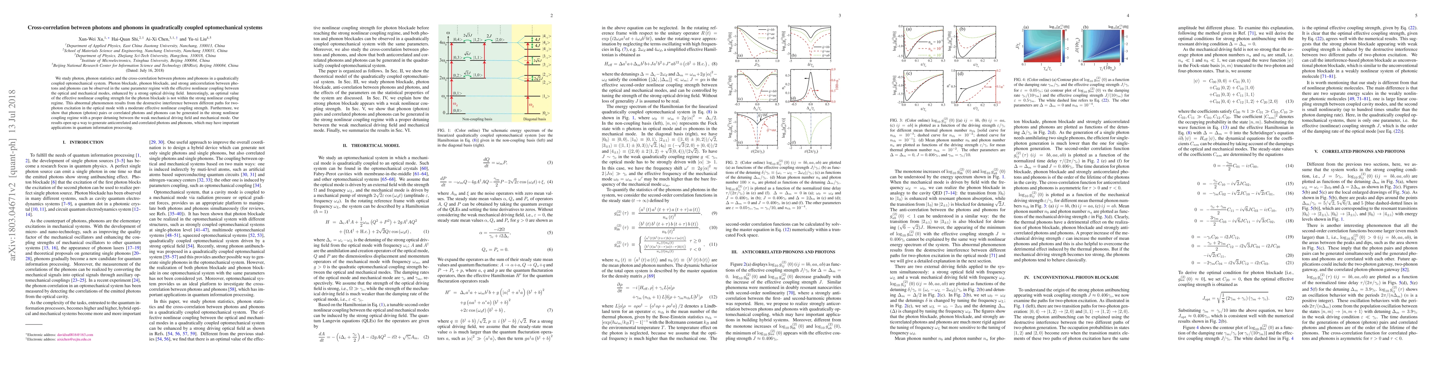 This paper investigates photon and phonon statistics and their cross-correlation in quadratically coupled optomechanical systems, revealing photon and phonon blockades and anticorrelations. An optimal nonlinear coupling strength for photon blockade exists outside the strong coupling regime, due to destructive interference, while correlated phonon and photon pairs can be generated in the strong coupling regime.