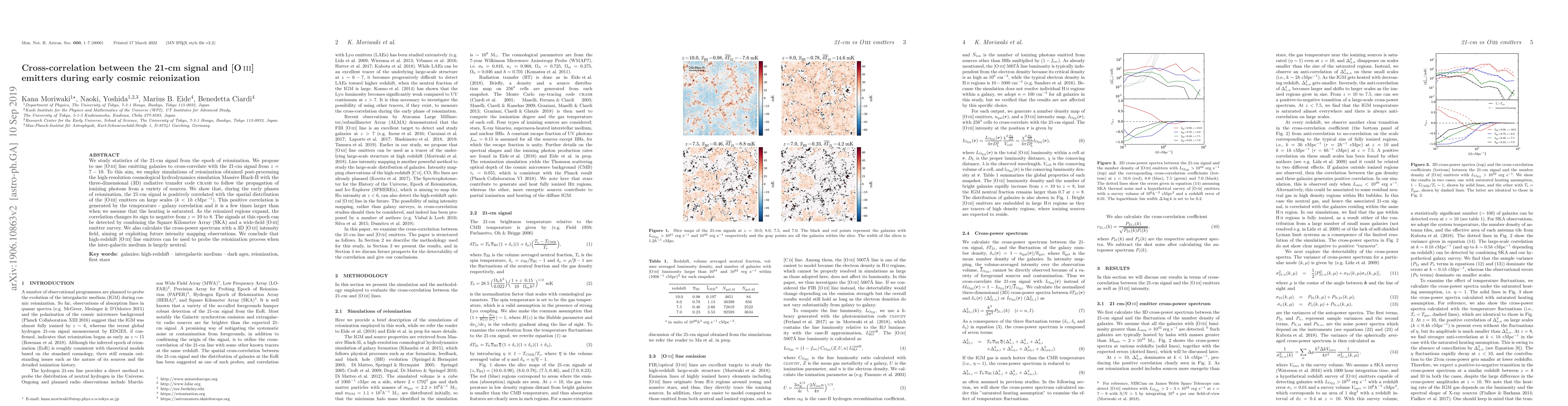This paper investigates the cross-correlation between the 21-cm signal during early cosmic reionization and [OIII] emitter galaxies, finding a positive correlation on large scales due to temperature-galaxy interactions. As reionization progresses, the correlation turns negative, detectable with the SKA and future [OIII] surveys.