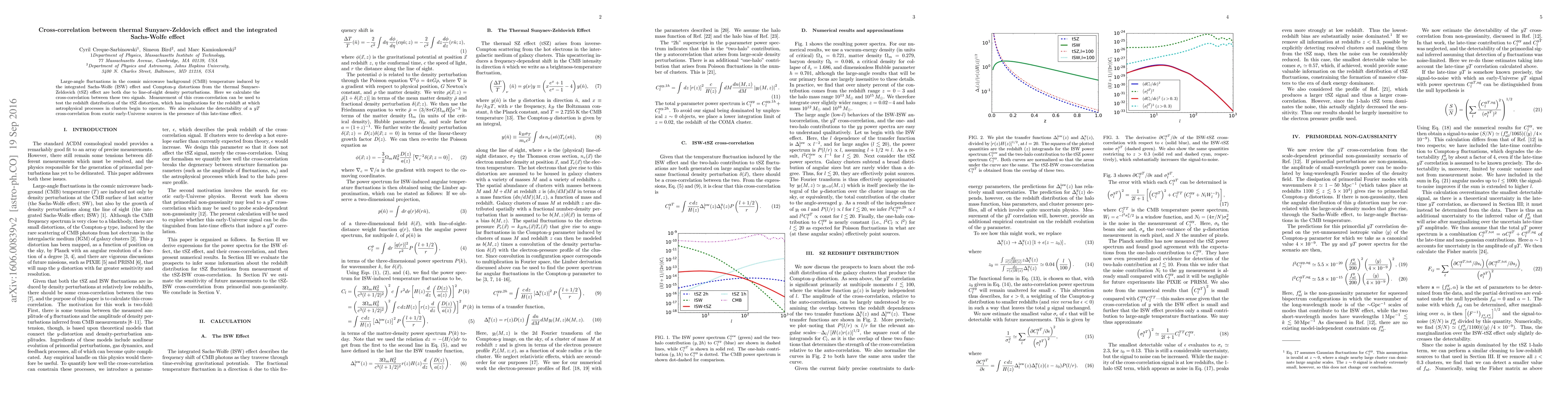 This paper calculates the cross-correlation between the thermal Sunyaev-Zeldovich effect and the integrated Sachs-Wolfe effect to test the redshift distribution of tSZ distortions, providing insights into the onset of astrophysical processes in clusters. It also assesses the detectability of this cross-correlation amidst potential early-Universe sources.