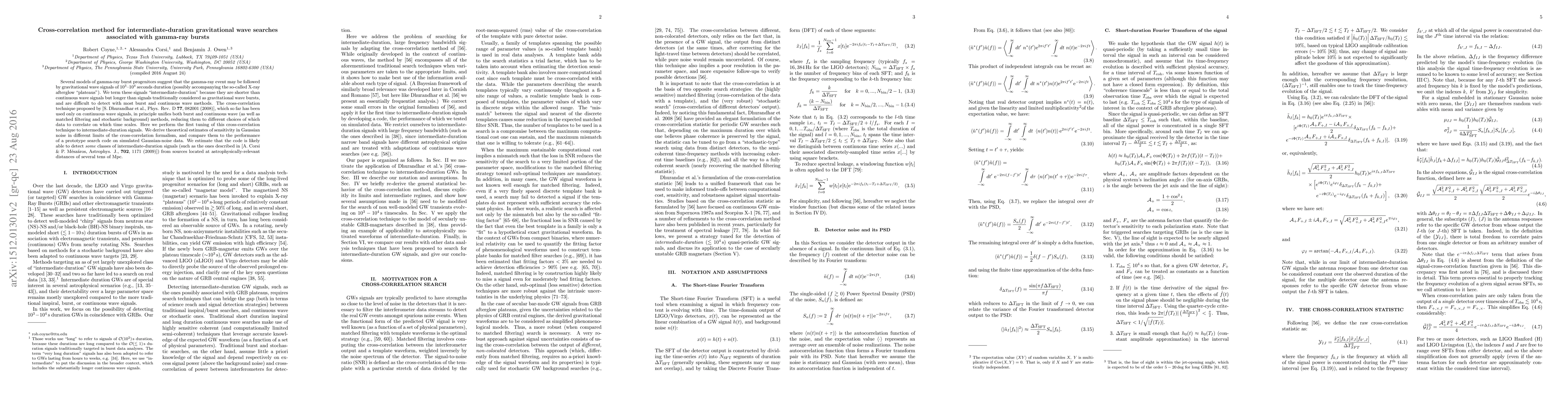 Several models of gamma-ray burst progenitors suggest that the gamma-ray event may be followed by gravitational wave signals of $10^3$-$10^4$ seconds duration (possibly accompanying the so-called X-ray afterglow "plateaus"). We term these signals "intermediate-duration" because they are shorter than continuous wave signals but longer than signals traditionally considered as gravitational wave bursts, and are difficult to detect with most burst and continuous wave methods. The cross-correlation technique proposed by [S. Dhurandhar et al., Phys. Rev. D 77, 082001 (2008)], which so far has been used only on continuous wave signals, in principle unifies both burst and continuous wave (as well as matched filtering and stochastic background) methods, reducing them to different choices of which data to correlate on which time scales. Here we perform the first tuning of this cross-correlation technique to intermediate-duration signals. We derive theoretical estimates of sensitivity in Gaussian noise in different limits of the cross-correlation formalism, and compare them to the performance of a prototype search code on simulated Gaussian-noise data. We estimate that the code is likely able to detect \emph{some} classes of intermediate-duration signals (such as the ones described in [A. Corsi \& P. M\'esz\'aros, Astrophys. J., 702, 1171 (2009)]) from sources located at astrophysically-relevant distances of several tens of Mpc.