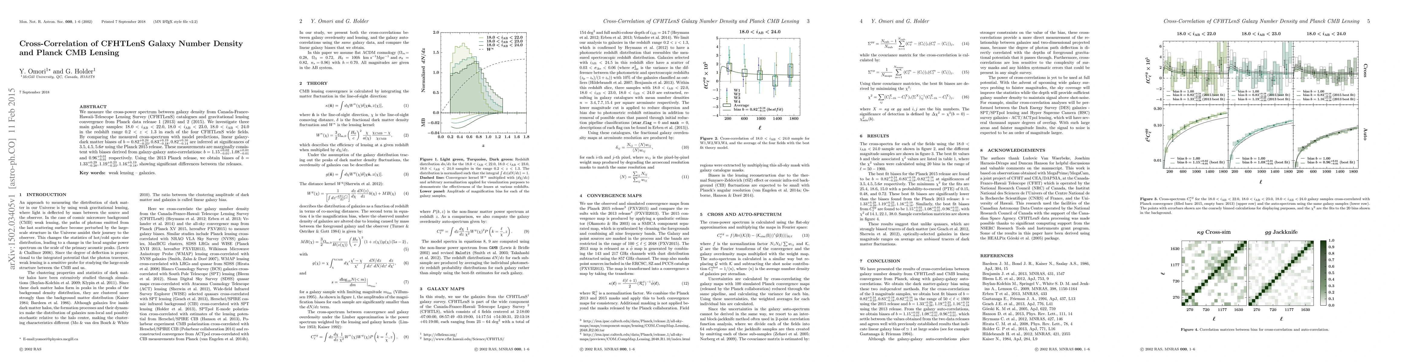 This study measures the cross-correlation between galaxy number density from CFHTLenS and gravitational lensing from Planck CMB data, inferring linear galaxy-dark matter biases of $b=0.82$ to $0.83$ at high significance using the 2015 Planck release. These biases are consistent with those derived from galaxy-galaxy auto-correlations but differ significantly from those obtained using the 2013 Planck release.