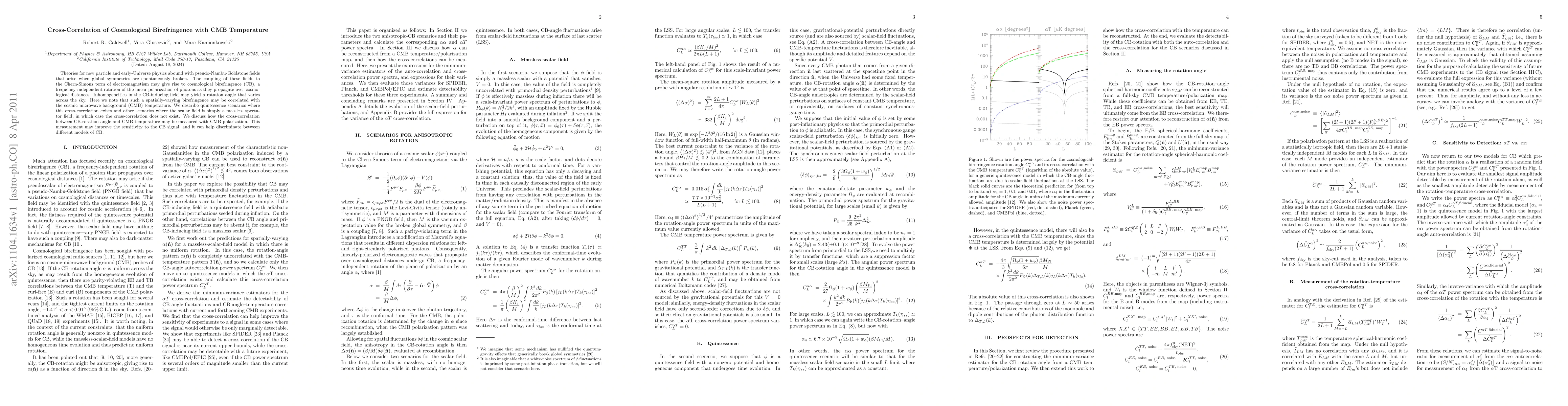 This paper explores the potential cross-correlation between cosmological birefringence (CB) and cosmic microwave background (CMB) temperature, suggesting that CB-inducing fields could be linked to CMB temperature variations. It discusses how measuring this cross-correlation with CMB polarization could enhance CB signal detection and distinguish between different CB models.