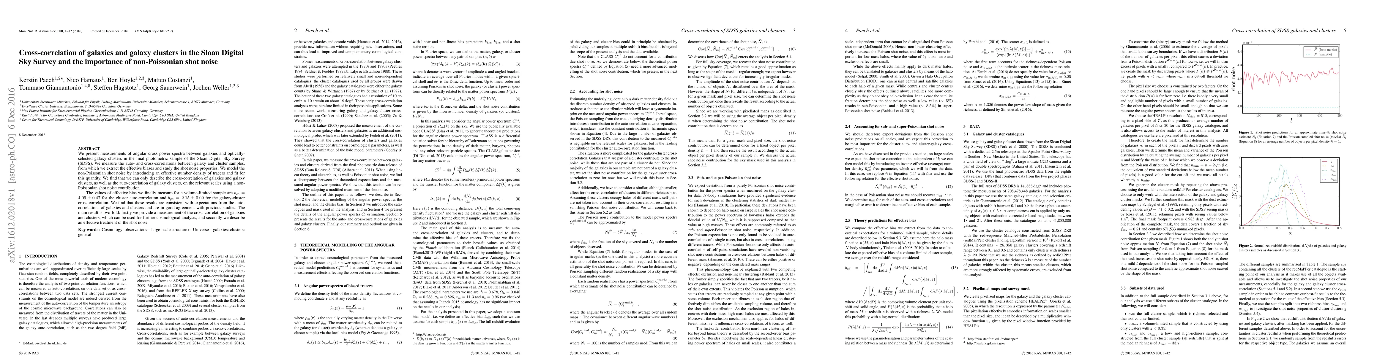 This paper measures angular cross-correlations between galaxies and galaxy clusters in the SDSS, finding that non-Poissonian shot noise significantly impacts these correlations. Effective bias values are derived, and the study introduces an effective number density to model the non-Poissonian shot noise, providing a useful tool for future cosmological analyses.