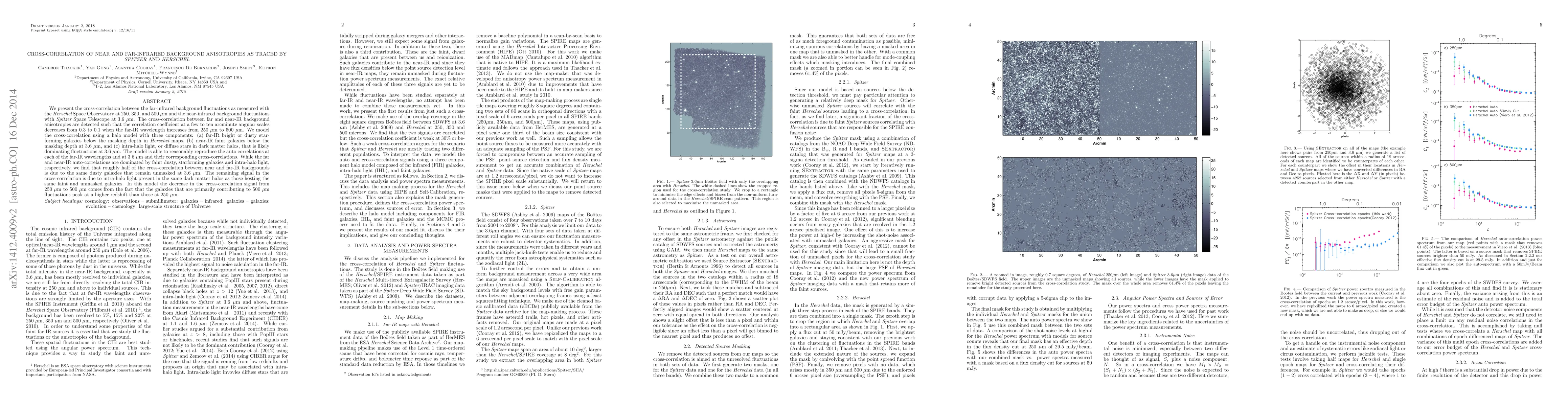 This study detects a cross-correlation between far-infrared (250-500 μm) and near-infrared (3.6 μm) background anisotropies using Herschel and Spitzer data, finding a decreasing correlation coefficient from 0.3 to 0.1 with increasing far-IR wavelength. The observed cross-correlation is modeled using a halo model, attributing the signal to faint galaxies and intra-halo light.