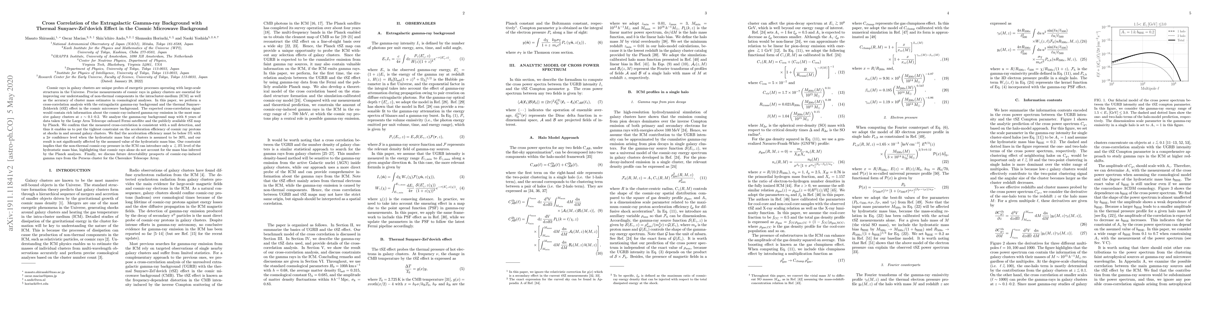 This paper investigates the cross-correlation between the extragalactic gamma-ray background and the thermal Sunyaev-Zel'dovich effect in the cosmic microwave background to constrain cosmic ray acceleration efficiency in galaxy clusters. The analysis finds no significant cross-correlation, leading to a constraint that cosmic ray proton acceleration efficiency must be below 5% with a 2σ confidence level.