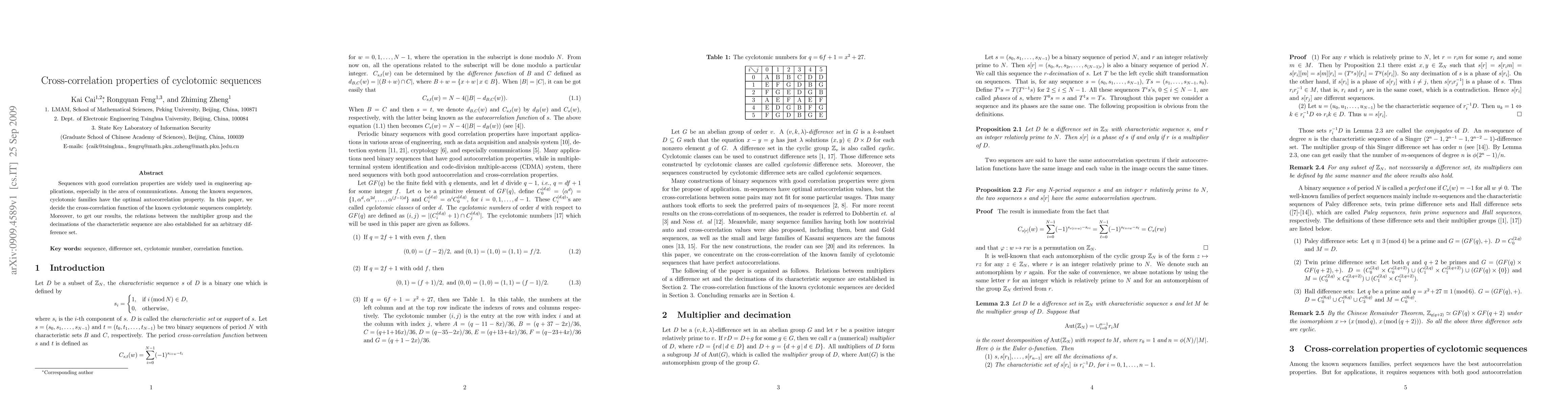 This paper fully determines the cross-correlation function of cyclotomic sequences, which have optimal autocorrelation properties, and establishes the relationships between the multiplier group and the decimations of the characteristic sequence for any difference set, crucial for engineering applications like communications.