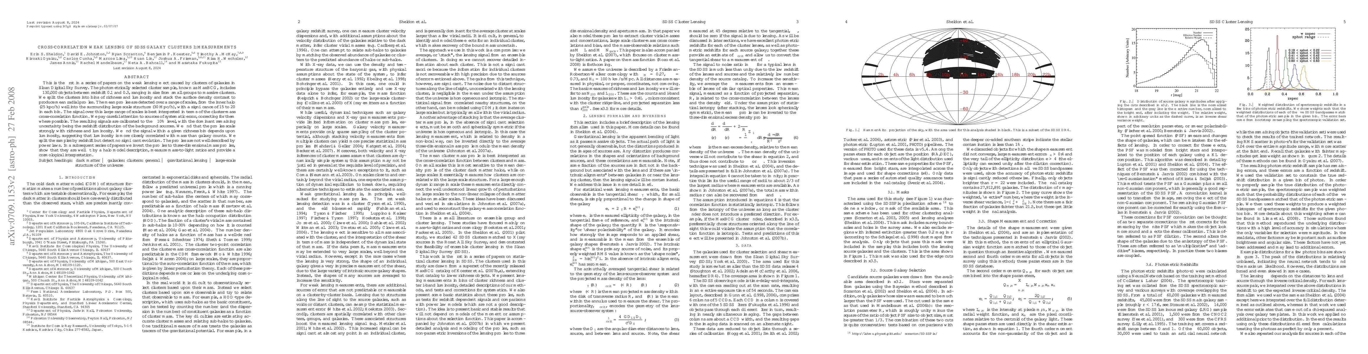 This paper measures the weak lensing effect of ~130,000 SDSS galaxy clusters, finding strong scaling of profiles with richness and luminosity, and detecting no significant redshift evolution. The results suggest luminosity correlates more closely with mass than galaxy counts, and subsequent papers will invert these profiles for mass-to-light ratios and cosmological interpretation.