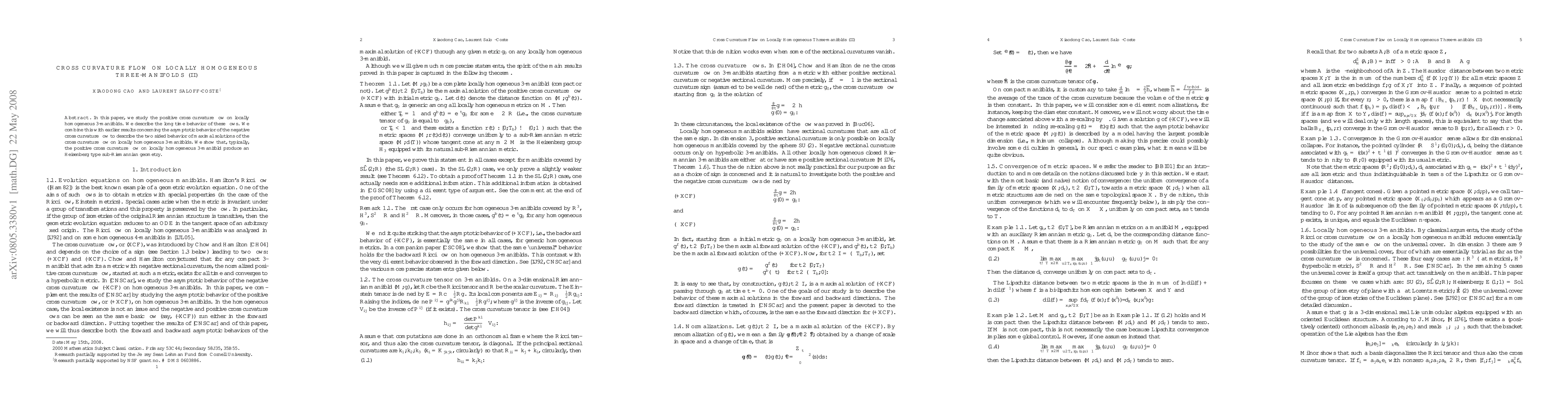 This paper investigates the long-term behavior of the positive cross curvature flow on locally homogeneous 3-manifolds, revealing that it typically generates an Heisenberg type sub-Riemannian geometry, combining insights from both positive and negative cross curvature flows.