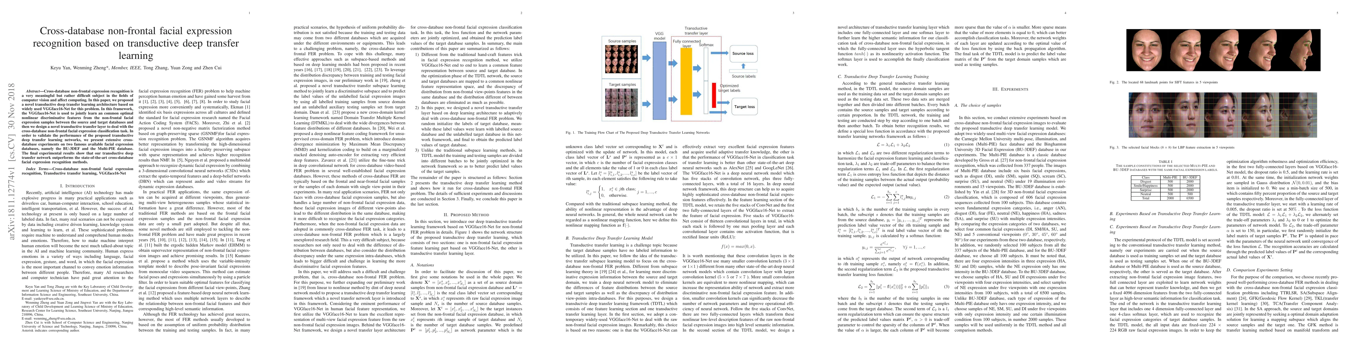 This paper proposes a novel transductive deep transfer learning framework using VGGface16-Net to enhance non-frontal facial expression recognition across different databases. The method achieves superior performance over existing state-of-the-art methods in cross-database experiments on BU-3DEF and Multi-PIE databases.