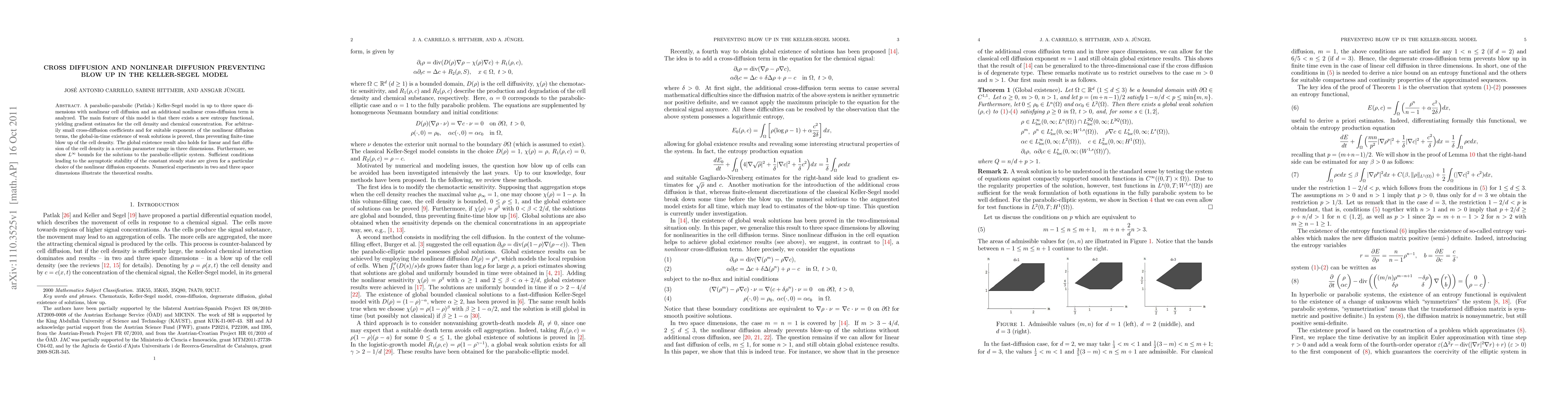 This paper analyzes a Keller-Segel model with nonlinear diffusion and cross-diffusion, proving global-in-time existence of weak solutions and preventing blow-up, while establishing $L^\infty$ bounds and asymptotic stability for specific parameter choices. Numerical experiments support the theoretical findings.