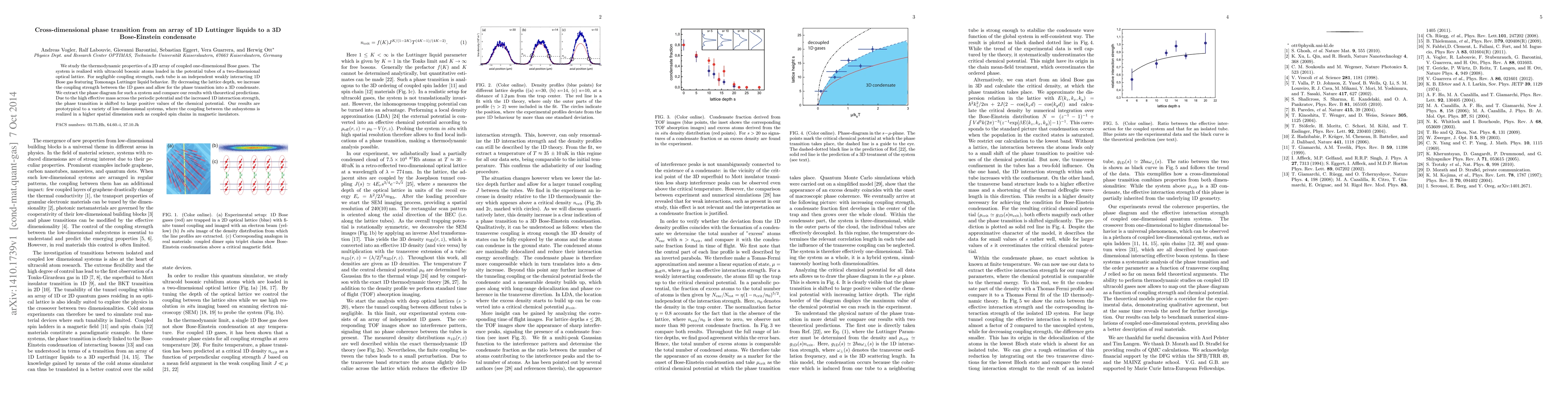 This paper investigates the thermodynamic properties of a 2D array of coupled 1D Bose gases transitioning from Luttinger liquid behavior to a 3D Bose-Einstein condensate as coupling strength increases. The study reveals a phase diagram and confirms theoretical predictions, highlighting the shift in phase transition due to high effective mass and increased interaction strength.