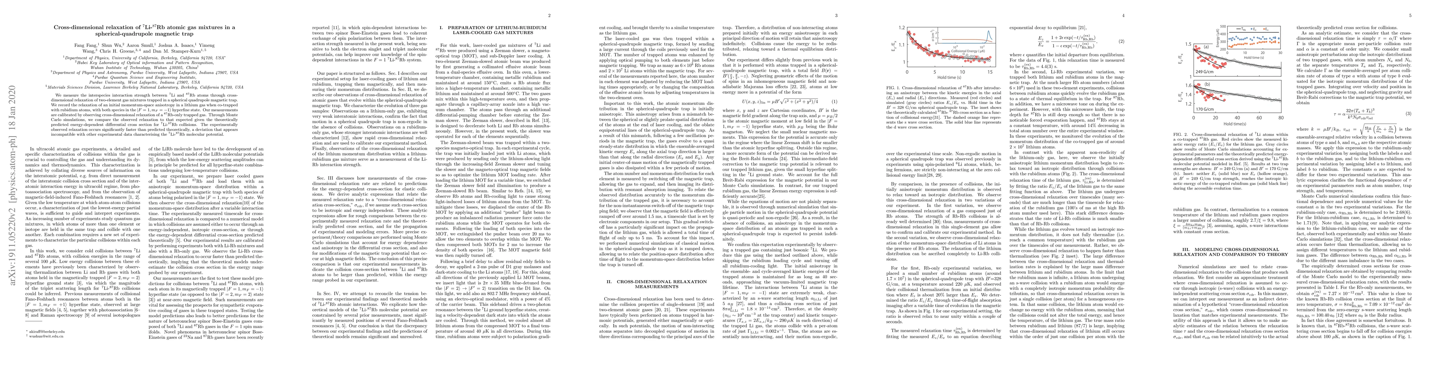 We measure the interspecies interaction strength between $^7$Li and $^{87}$Rb atoms through cross-dimensional relaxation of two-element gas mixtures trapped in a spherical quadrupole magnetic trap. We record the relaxation of an initial momentum-space anisotropy in a lithium gas when co-trapped with rubidium atoms, with both species in the $|F=1, m_F = -1\rangle$ hyperfine state. Our measurements are calibrated by observing cross-dimensional relaxation of a $^{87}$Rb-only trapped gas. Through Monte Carlo simulations, we compare the observed relaxation to that expected given the theoretically predicted energy-dependent differential cross section for $^7$Li-$^{87}$Rb collisions. The experimentally observed relaxation occurs significantly faster than predicted theoretically, a deviation that appears incompatible with other experimental data characterising the $^7$Li-$^{87}$Rb molecular potential.
