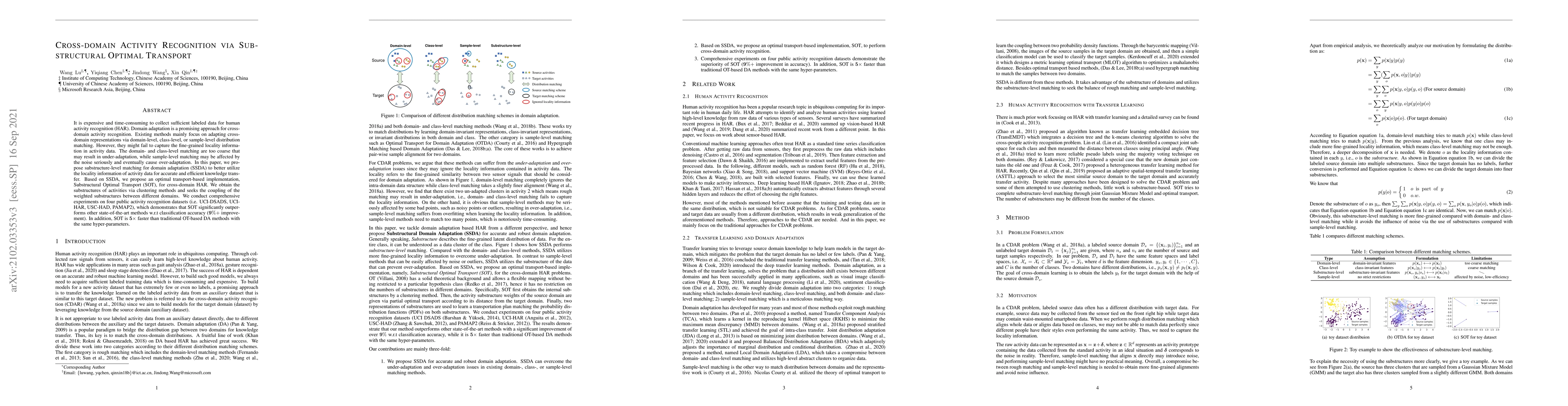 This paper proposes Substructural Optimal Transport (SOT) for domain adaptation in cross-domain human activity recognition, utilizing substructure-level matching to capture fine-grained locality information. SOT significantly outperforms other methods in classification accuracy and is five times faster, demonstrating a 9%+ improvement and efficiency gains.