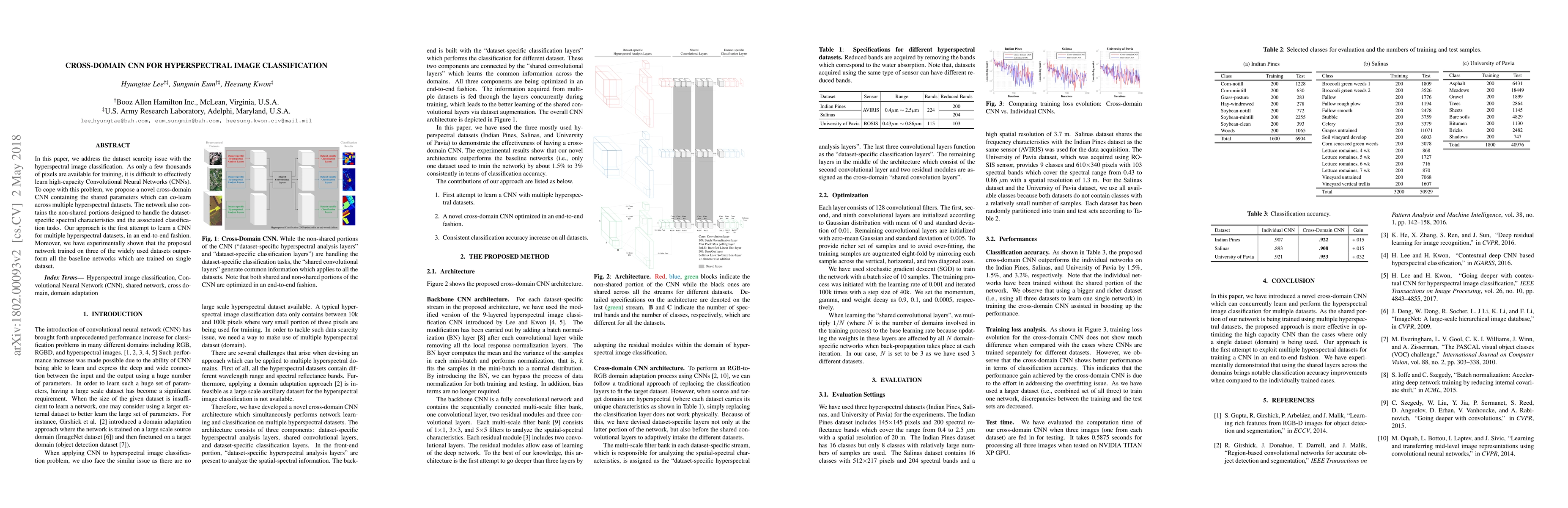 This research introduces a novel cross-domain Convolutional Neural Network (CNN) to tackle the challenge of dataset scarcity in hyperspectral image classification. The proposed network shares parameters across multiple datasets while also having non-shared components to address specific spectral characteristics, demonstrating superior performance compared to baseline networks trained on single datasets.