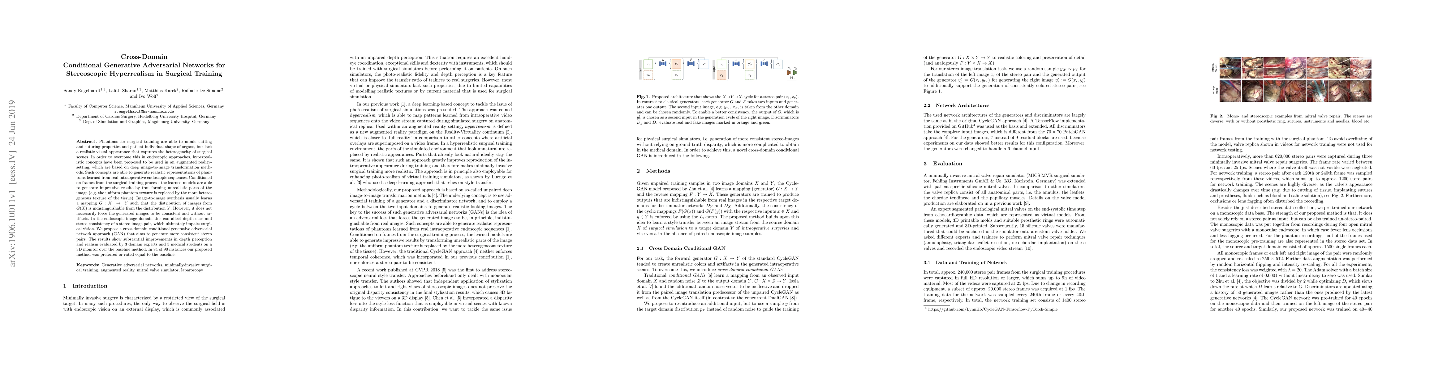 A new approach using cross-domain conditional generative adversarial networks improves depth perception and realism in stereoscopic images for surgical training, outperforming a baseline method.