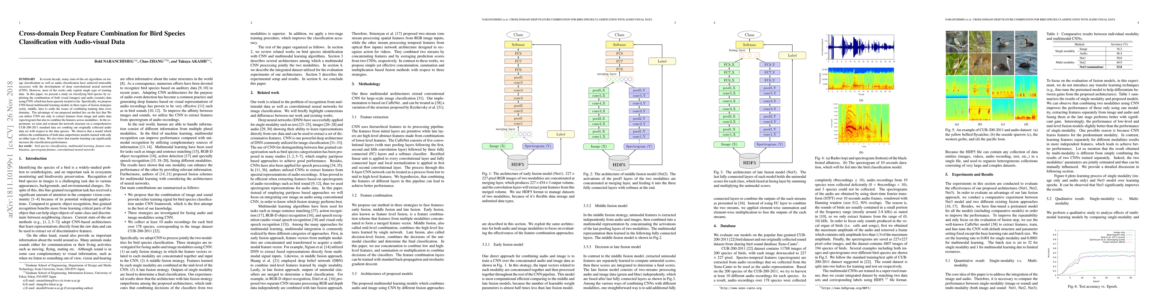 This paper proposes a deep learning method that combines visual images and audio data to classify bird species, achieving better performance than models trained on single modalities. The method utilizes feature combination strategies and transfer learning to increase classification accuracy.