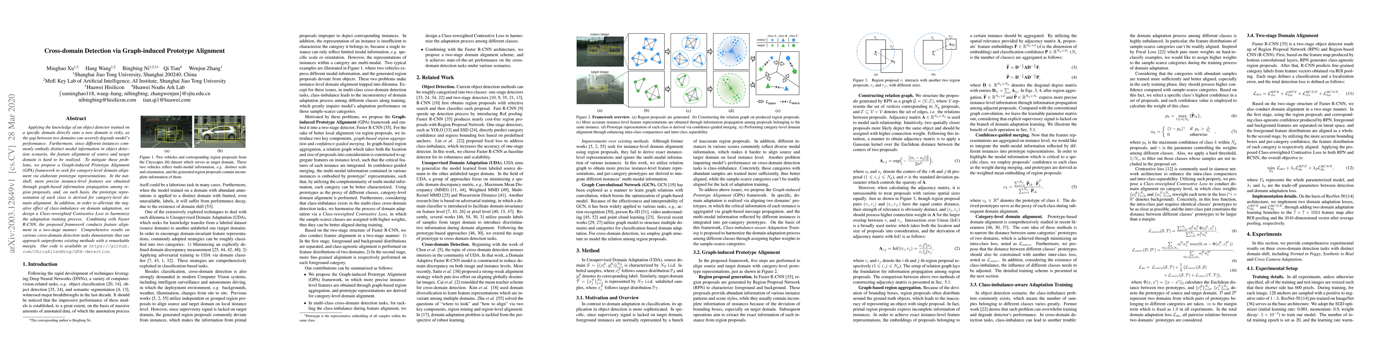 This research paper proposes a Graph-induced Prototype Alignment (GPA) framework for enhancing cross-domain object detection by aligning domain-specific features through prototype representations. The method uses graph-based information propagation to refine instance-level features and employs a Class-reweighted Contrastive Loss to address class imbalance, achieving superior performance compared to existing methods. For more details, please refer to the paper and the provided code repository.