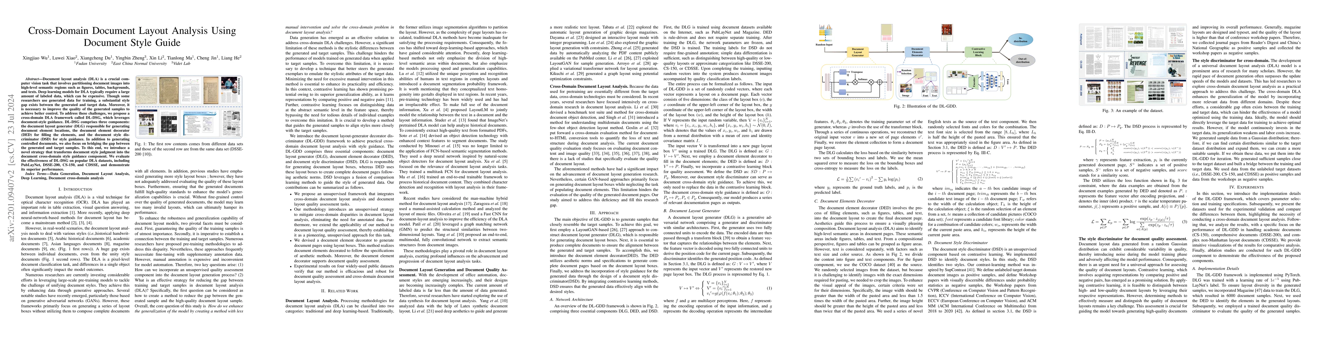 This paper presents an unsupervised framework for cross-domain document layout analysis (DLA) using document style guidance, comprising a Document Layout Generator, Document Elements Decorator, and Document Style Discriminator, achieving strong generalization and remarkable performance across diverse document types.
