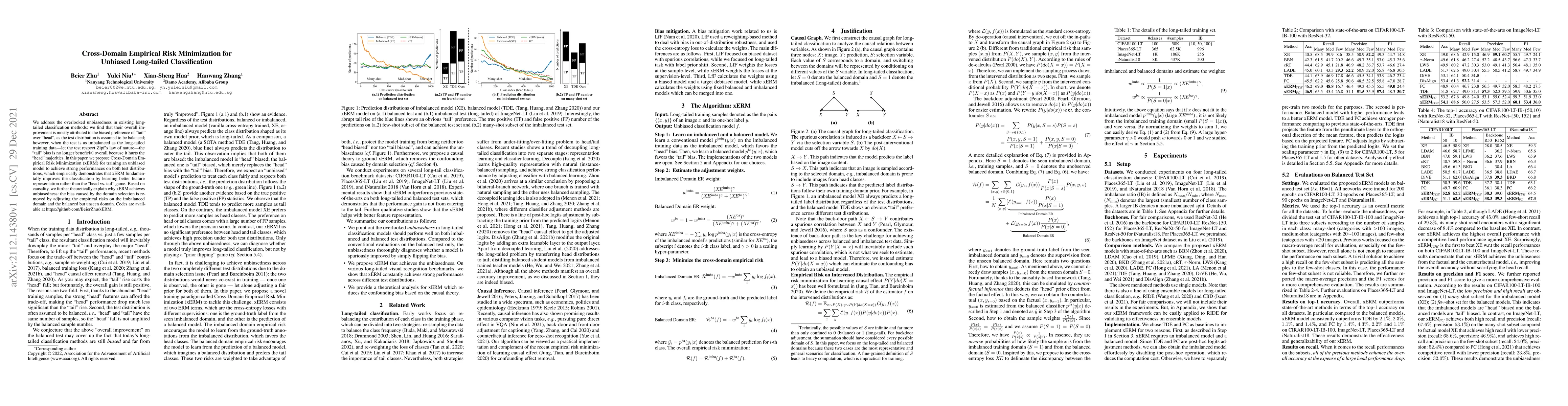 We address the overlooked unbiasedness in existing long-tailed classification methods: we find that their overall improvement is mostly attributed to the biased preference of tail over head, as the test distribution is assumed to be balanced; however, when the test is as imbalanced as the long-tailed training data -- let the test respect Zipf's law of nature -- the tail bias is no longer beneficial overall because it hurts the head majorities. In this paper, we propose Cross-Domain Empirical Risk Minimization (xERM) for training an unbiased model to achieve strong performances on both test distributions, which empirically demonstrates that xERM fundamentally improves the classification by learning better feature representation rather than the head vs. tail game. Based on causality, we further theoretically explain why xERM achieves unbiasedness: the bias caused by the domain selection is removed by adjusting the empirical risks on the imbalanced domain and the balanced but unseen domain. Codes are available at https://github.com/BeierZhu/xERM.