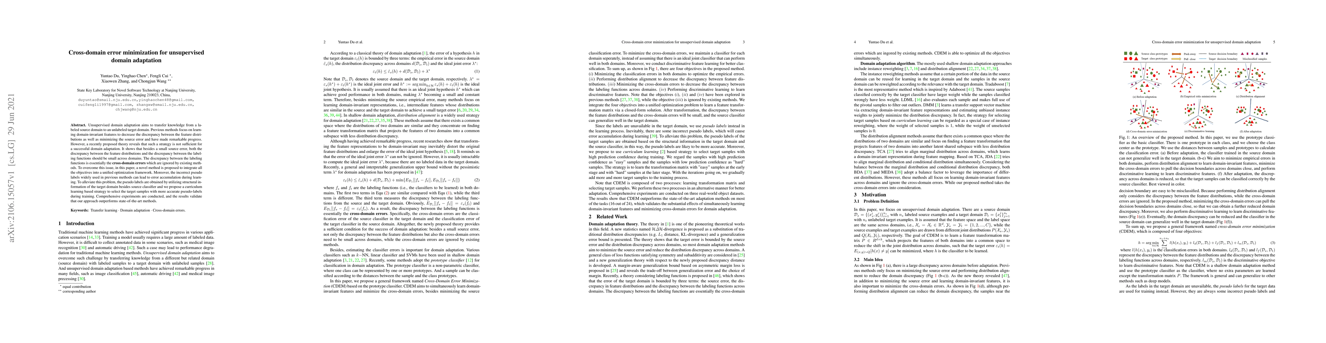 This paper proposes a novel method for unsupervised domain adaptation that minimizes both feature distribution discrepancy and cross-domain error by integrating domain-invariant learning, pseudo-label refinement using target domain structure, and a curriculum learning strategy to reduce error accumulation. Experimental results show superior performance compared to existing approaches.