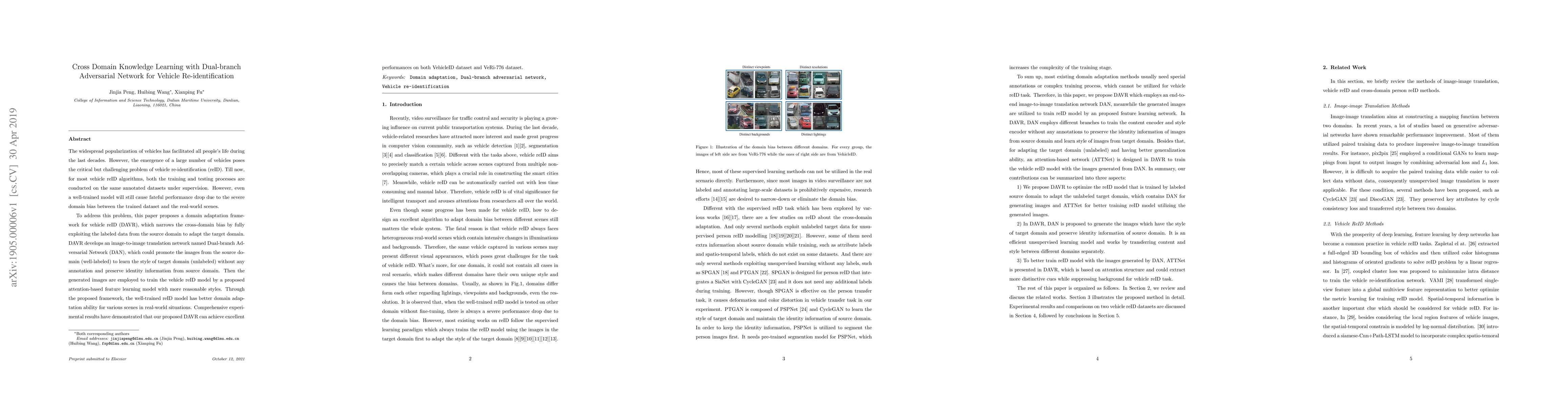 This paper proposes a domain adaptation framework for vehicle re-identification (DAVR) using a Dual-branch Adversarial Network (DAN) to bridge the gap between labeled source and unlabeled target domains. The DAN generates images mimicking the target domain style, aiding in training a robust reID model with improved real-world adaptability.