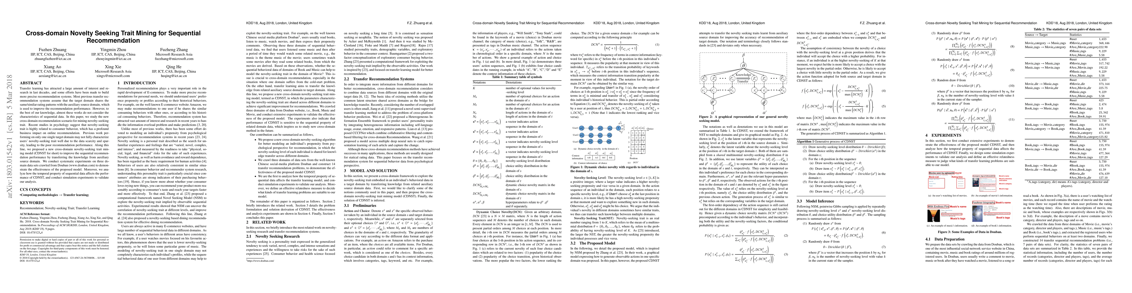 This paper proposes a cross-domain novelty-seeking trait mining model (CDNST) to enhance sequential recommendation performance by leveraging knowledge from auxiliary source domains. Experiments on Douban data sets demonstrate the model's effectiveness, and analysis shows the impact of sequential data's temporal properties on CDNST performance.