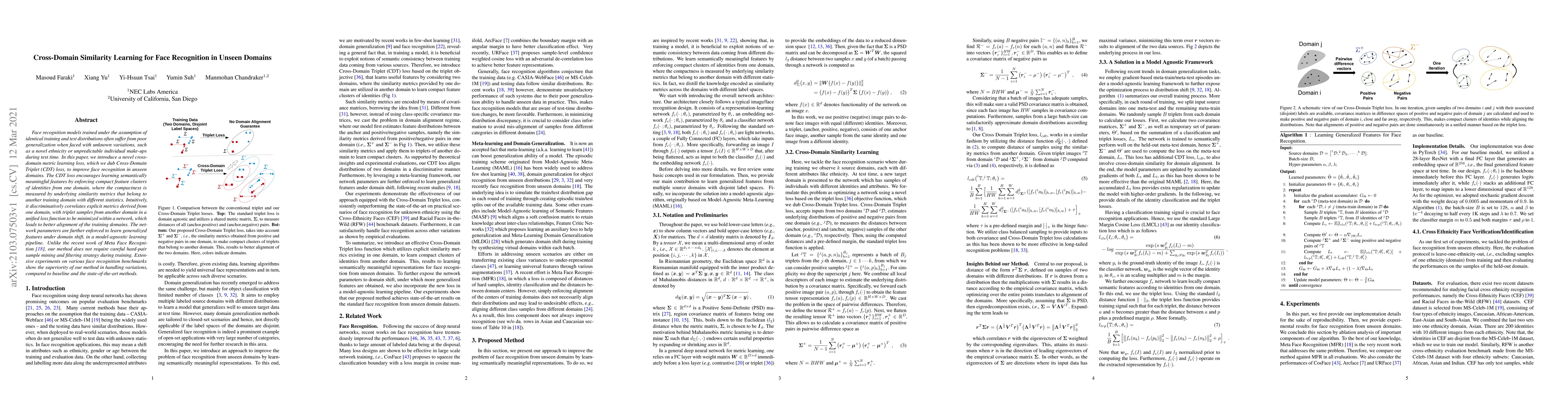 This paper introduces a new loss function to improve face recognition in unseen domains by learning semantically meaningful features that can handle variations such as ethnicity or individual make-ups. The method shows superiority over baseline and state-of-the-art methods in handling domain shift.