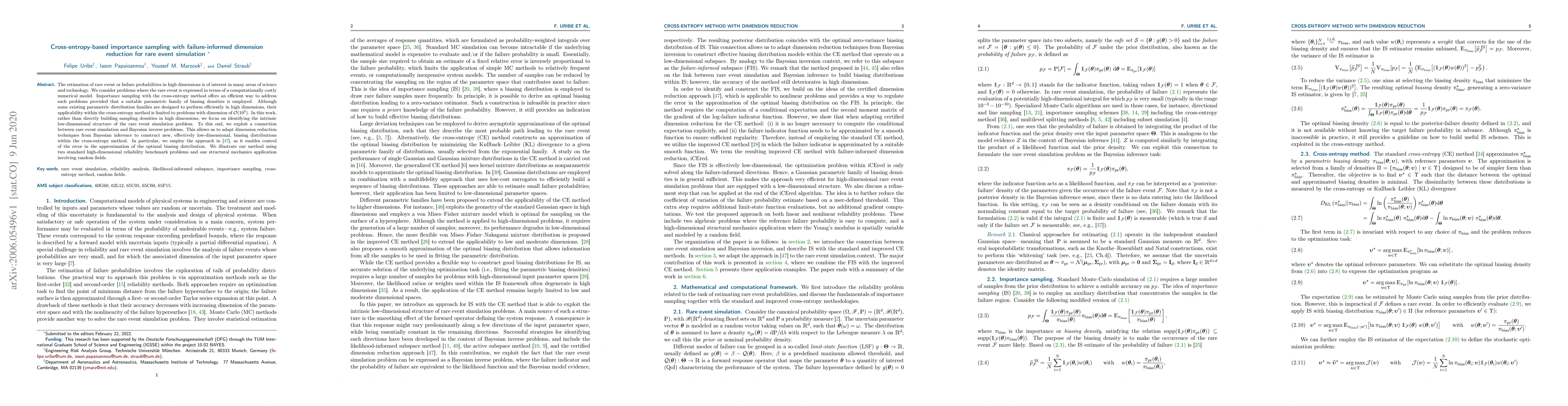 This paper proposes a cross-entropy-based importance sampling method that utilizes failure-informed dimension reduction to efficiently estimate rare event probabilities in high-dimensional simulations. The method leverages Bayesian inverse problems to identify low-dimensional structures, constructing effective biasing distributions that improve computational efficiency.