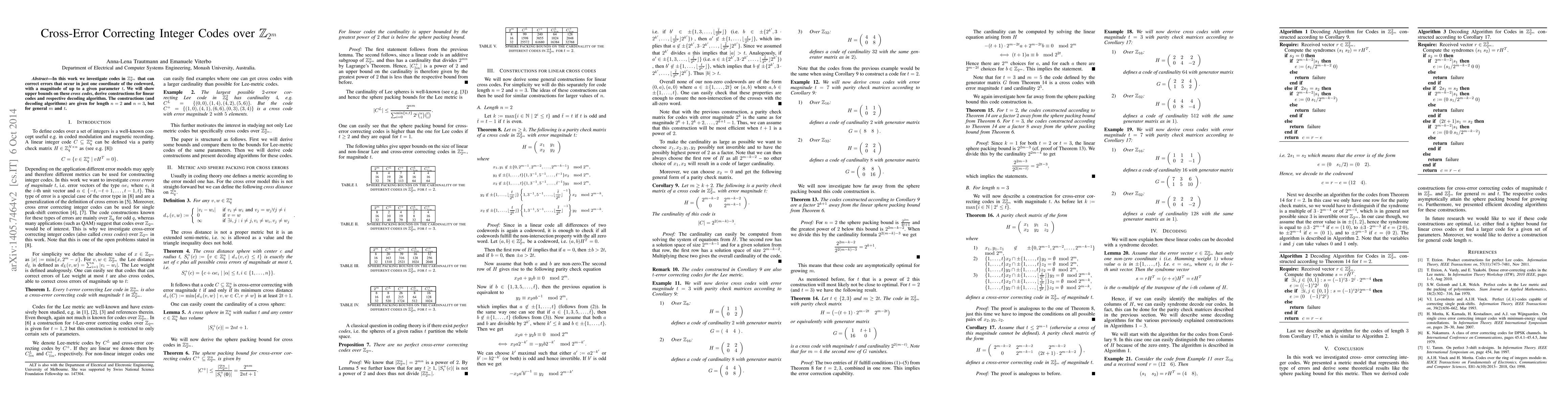 This paper explores cross-error correcting integer codes in $\mathbb{Z}_{2^m}^n$ capable of correcting single-coordinate errors up to a parameter $t$. It provides upper bounds, constructions for linear codes, and decoding algorithms for lengths $n = 2$ and $3$, applicable for general $m$ and $t$.