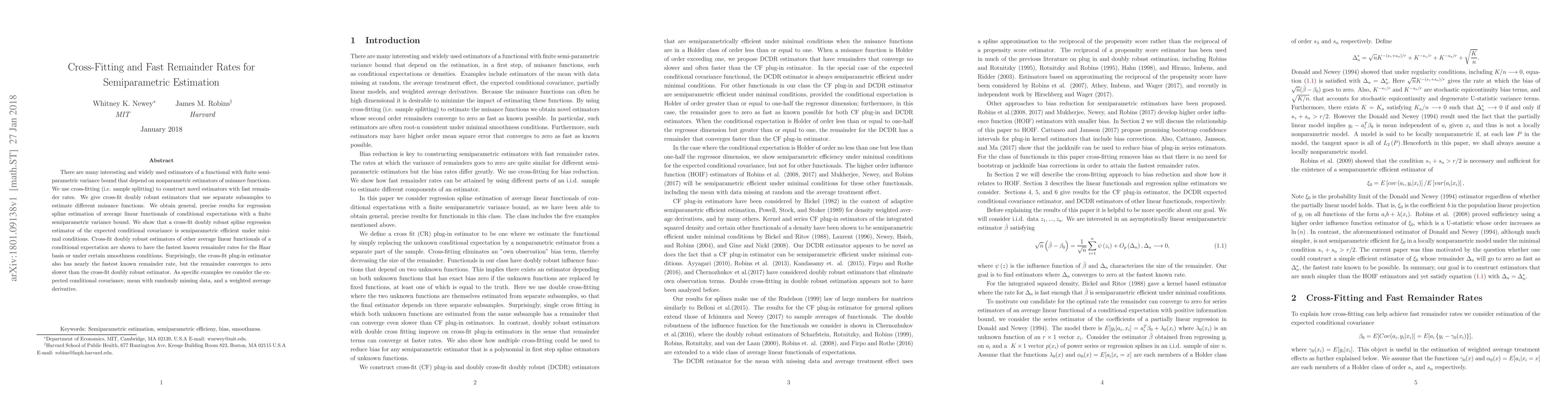 This paper introduces cross-fitting techniques to construct semiparametric estimators with fast remainder rates, achieving semiparametric efficiency for doubly robust spline regression estimators under minimal conditions. The cross-fit doubly robust estimators outperform other methods in terms of remainder rates, with the cross-fit plug-in estimator also showing nearly optimal performance.