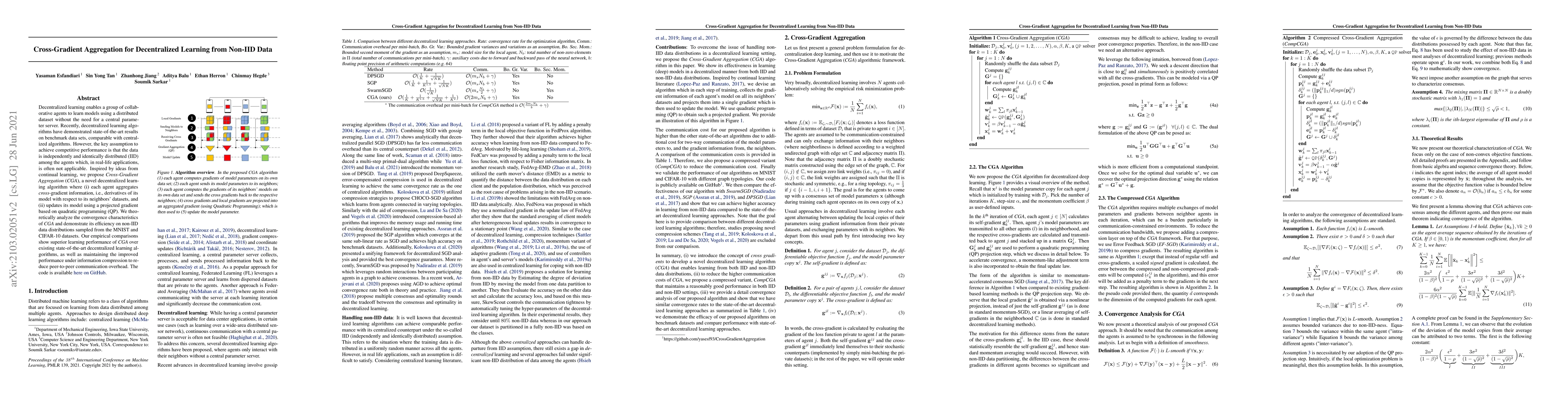 This paper proposes Cross-Gradient Aggregation (CGA), a decentralized learning algorithm that aggregates cross-gradient information from neighboring datasets to handle non-IID data, achieving superior performance compared to existing methods on MNIST and CIFAR-10 datasets. The algorithm maintains efficiency even under information compression.