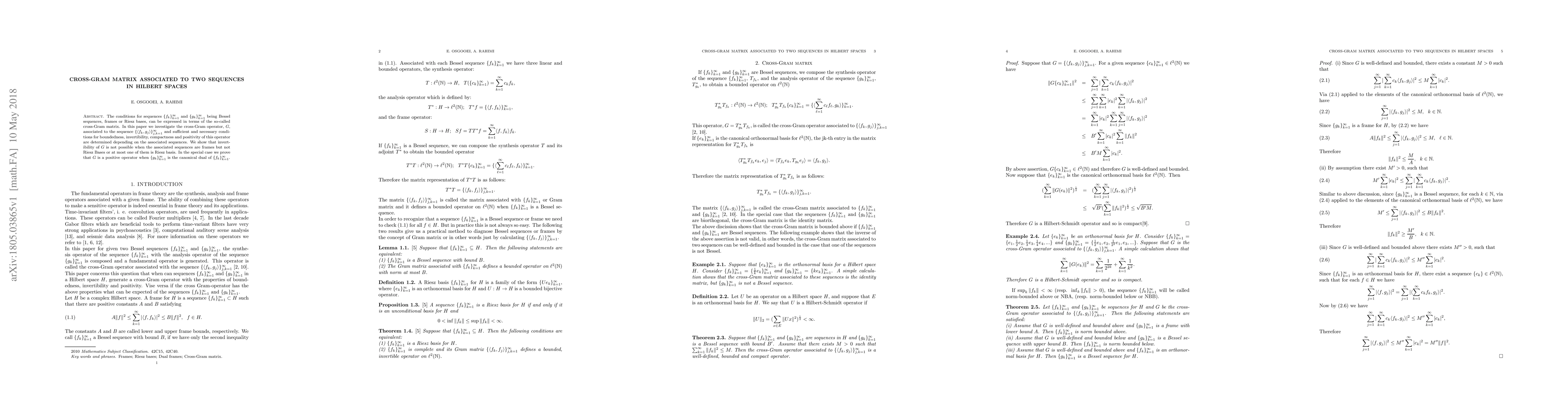 This paper explores the cross-Gram operator associated with two sequences in Hilbert spaces, determining conditions for its boundedness, invertibility, compactness, and positivity. It finds that invertibility is impossible for frame sequences that are not Riesz bases.