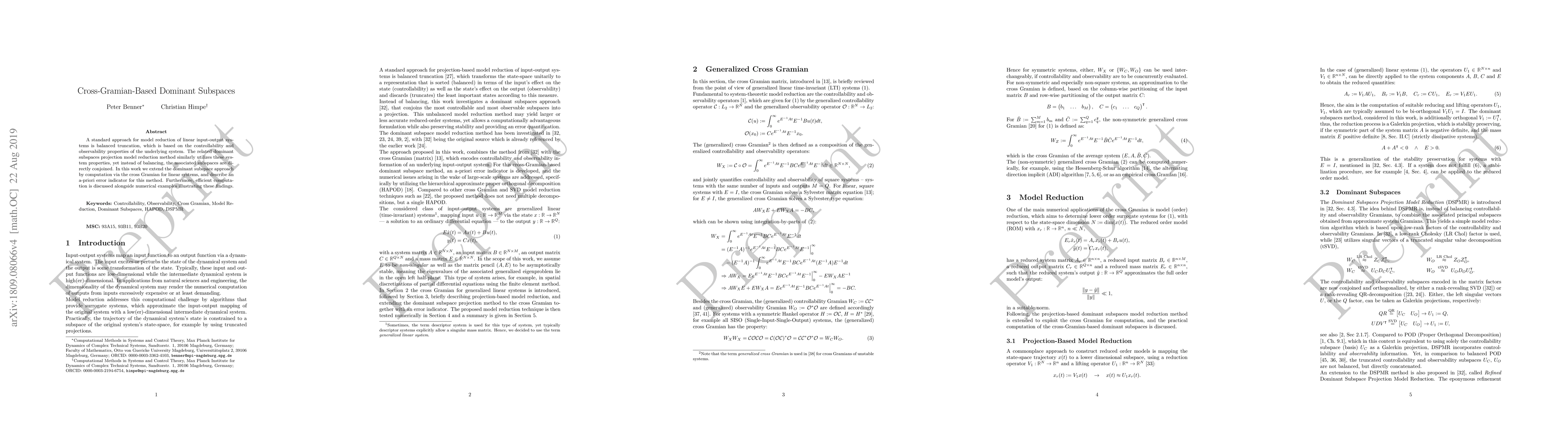This paper extends the dominant subspace projection model reduction method for linear systems by computing it through the cross Gramian, providing an a-priori error indicator, and discussing efficient computation with numerical examples to illustrate the method.