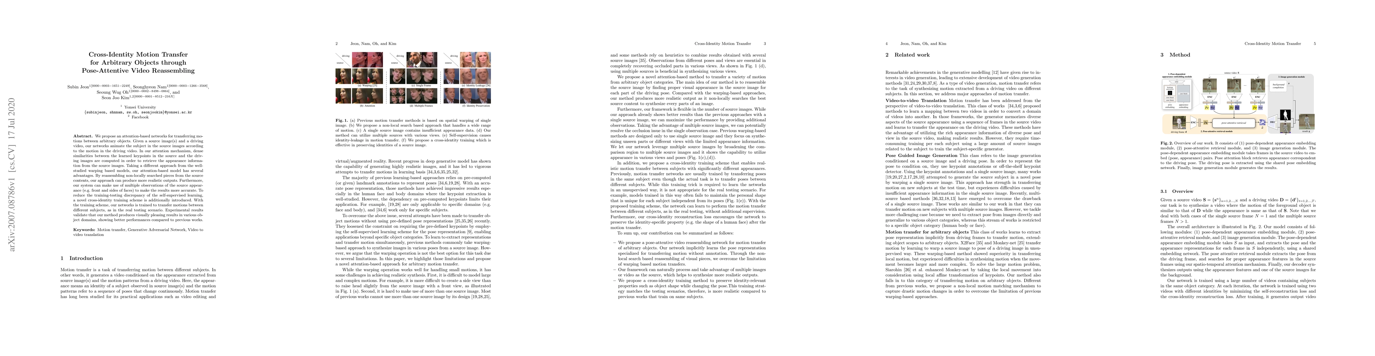 Researchers developed an attention-based model to transfer motions between arbitrary objects through pose-attentive video reassembling, producing more realistic outputs than previous warping-based models.