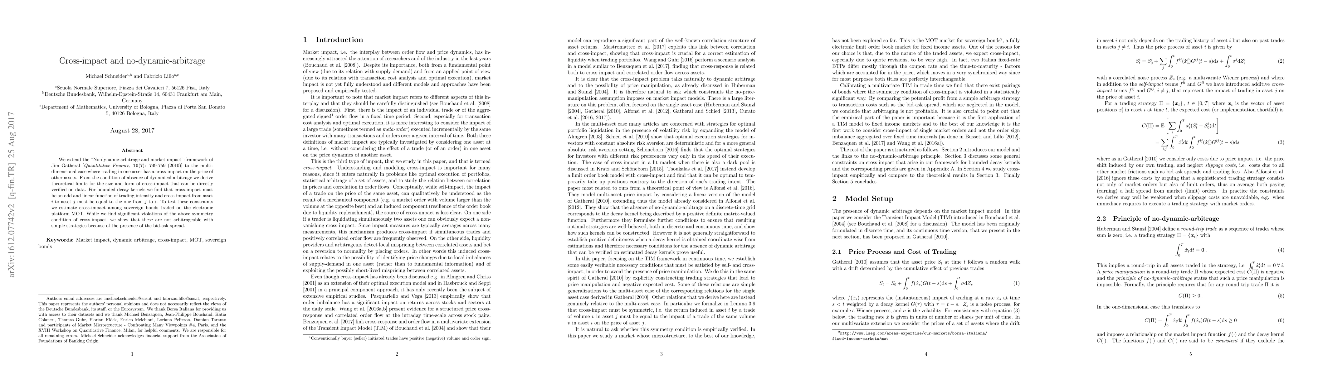 We extend the "No-dynamic-arbitrage and market impact"-framework of Jim Gatheral [Quantitative Finance, 10(7): 749-759 (2010)] to the multi-dimensional case where trading in one asset has a cross-impact on the price of other assets. From the condition of absence of dynamical arbitrage we derive theoretical limits for the size and form of cross-impact that can be directly verified on data. For bounded decay kernels we find that cross-impact must be an odd and linear function of trading intensity and cross-impact from asset $i$ to asset $j$ must be equal to the one from $j$ to $i$. To test these constraints we estimate cross-impact among sovereign bonds traded on the electronic platform MOT. While we find significant violations of the above symmetry condition of cross-impact, we show that these are not arbitrageable with simple strategies because of the presence of the bid-ask spread.