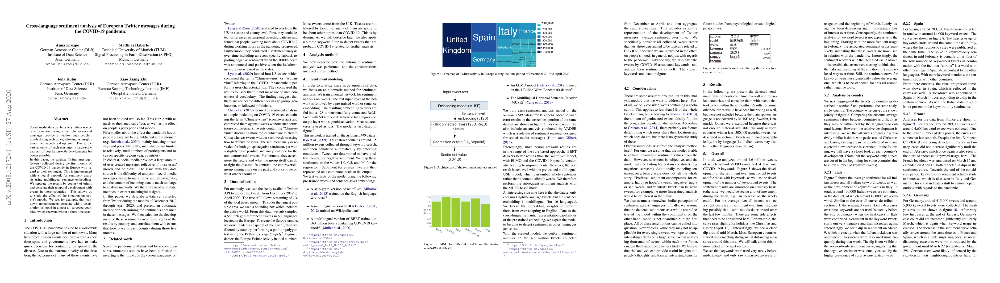 This paper analyzes sentiment in European Twitter messages during the early COVID-19 pandemic using a neural network with multilingual embeddings. Findings show a temporary mood decline following lockdown announcements, which generally recovers shortly thereafter.
