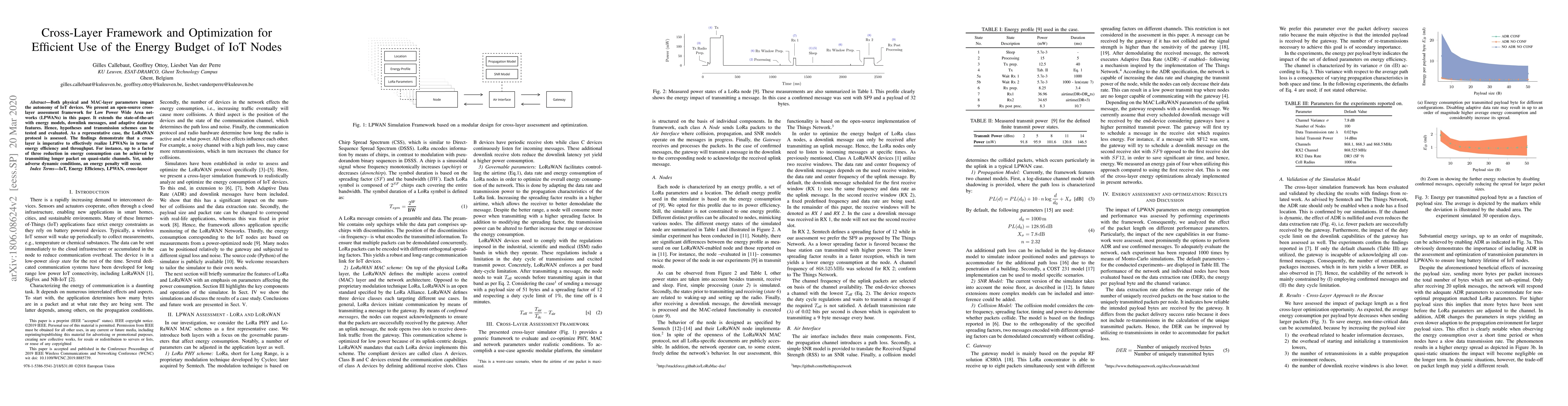 This paper proposes a cross-layer framework for optimizing the energy budget of IoT nodes, demonstrating significant improvements in energy efficiency and throughput in LPWANs. The study introduces an open-source LPWAN assessment framework and evaluates the LoRaWAN protocol, showing that larger payloads can reduce energy consumption but may incur penalties under dynamic conditions.